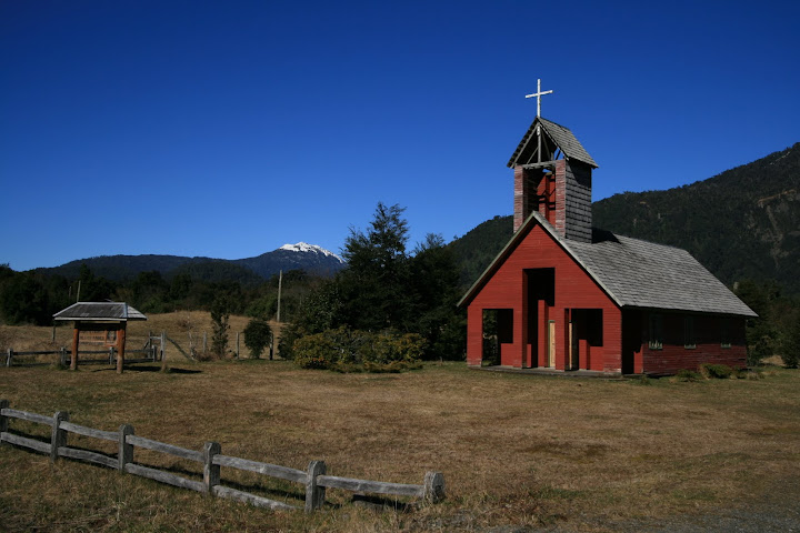 all Americans talk that way. It's just a product of the people he has learned English from. So, after finally making it across the border, it was pretty amazing to see the change in the landscape. Apart from an ominous-looking volcano at Puyehue National Park, the land in Chile is very fertile with lots of farms and rolling hills.